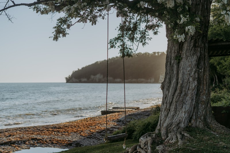 После долгого и насыщенного дня вечер мы проведем максимально спокойно, встретив закат в Пицундо-Мюссерском заповеднике. Это местечко любимо многими, здесь можно покататься на качелях на берегу и увидеть старинный храм, а также прогуляться по берегу моря с зеленой травой — такого вы не увидите больше нигде.