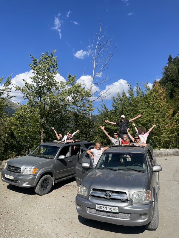 В пути можем остановиться, чтобы вы попробовали абхазские мёд и вино, также прокатились на тарзанке над ущельем.