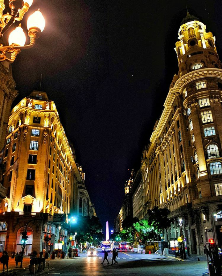 " Буэнос-Айрес — это город, который никогда не спит! С заходом солнца он откроется для вас по-новому. Вы проедете и по желанию пройдёте по улицам столицы Аргентины, увидите нарядную публику, что вышла поужинать ближе к ночи, и полюбуетесь вечерними пейзажами. А я расскажу, на что похож шпиль на проспекте 9 июля и почему резиденция президента окрашена в розовый цвет. "