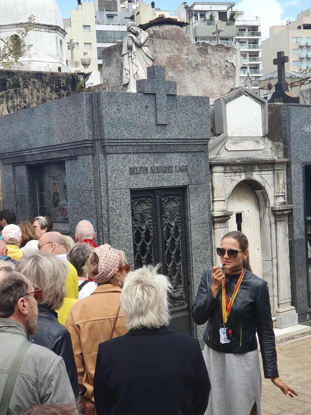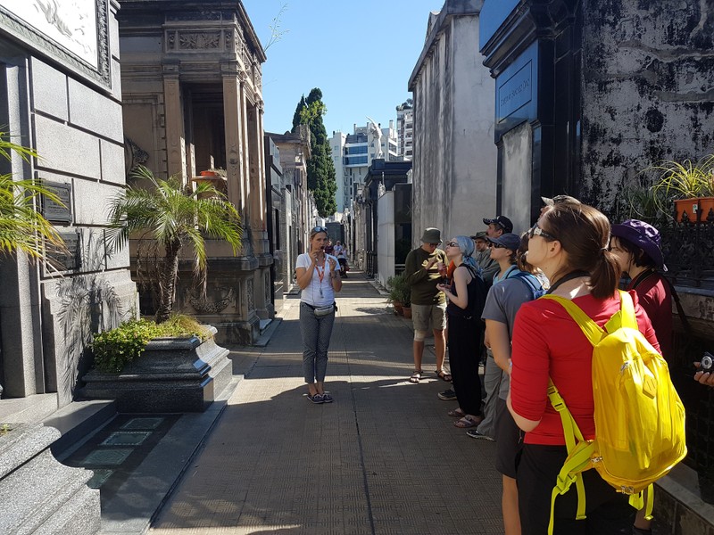 И завершим наш программу на Реколете, в самом престижном районе города, где посетим церковь в колониальном стиле Наша Леди Пилар, вторую самую старую в городе, и зайдём на легендарное кладбище, чтобы посетить могилу Евы Перон, супруги президента Хуана Доминго Перона, снискавшей огромную любовь у своего народа и прославившейся под именем Эвита.