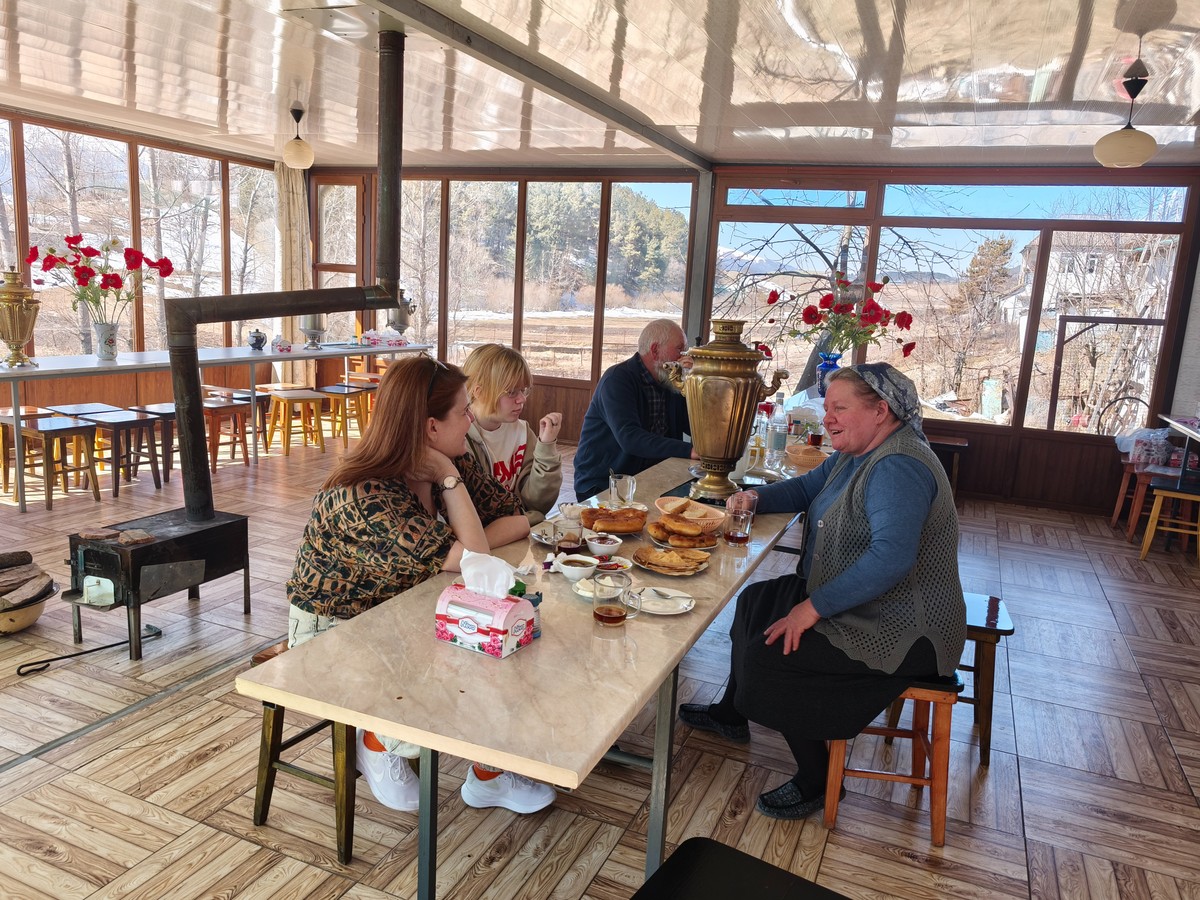 - Отдельно оплачивается: чаепитие в Фиолетово (чай из самовара, пирожки с картошкой и квашеной капустой) — 3000 драмов ($7,8) за чел., обед — по желанию