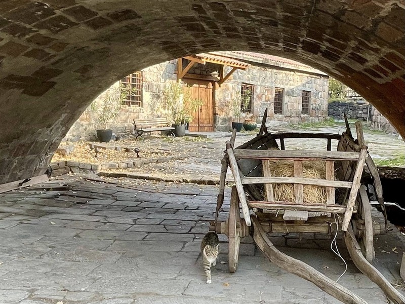 «Читать» нашу страну вы начнете с города Аштарак, который бережно хранит национальные традиции и колорит. Вы посетите маленькую церквушку Кармравор 7 века, с недавно восстановленными фресками. Мы поговорим о выдающихся людях: я расскажу, как Арарат чудным образом объединил поэтов Евтушенко и Геворга Эмина с художником Сарьяном. Здесь же вы увидите кафе, связанное с необычной историей армянина, познававшего азбуку кофейного бизнеса. А в местном магазине сможете купить традиционный армянский шоколад и лучший шароц (он же суджух /чурчхела). В конце прогулки по Аштараку мы спустимся к ущелью, где сохранился трехарочный мост 17 века и старая водяная мельница Мухсонц.
