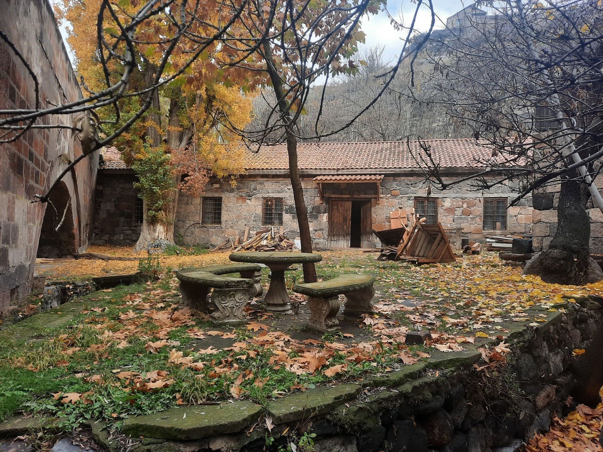 Следующая остановка — Касахское ущелье, многоступенчатый каньон, на глубине которого бежит река. Красивый союз неба, камня, воды и виднеющихся вершин гор Арагац — поразительный пейзаж! После вы посетите монастырь Сагмосаванк (монастырь Псалмов), который князья Вачутяны построили на краю обрыва в 13 веке. Среди его зданий выделяется книгохранилище, совмещенное с церковью. Я поделюсь легендами и реальными историями о том, какой ценой армяне сохранили древние рукописи.