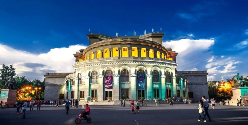 Мы встретимся на площади Республики, построенной в середине прошлого века. Я расскажу историю основания города, а вы осмотрите старинные здания из армянского красного туфа — Правительство Армении, Министерство Связи и Транспорта, Министерство Иностранных Дел, Национальную Галерею Армении и Музей Истории. Также площадь украшена прекрасными танцующими фонтанами. Мы посмотрим красочное вечернее шоу и поговорим об архитектурном ансамбле.