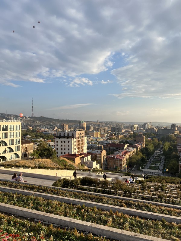 Это не просто лестница, а музей под открытым небом — со скульптурами, террасами, садами и фонтанами. С вершины открывается один из самых впечатляющих видов на Ереван и гору Арарат.