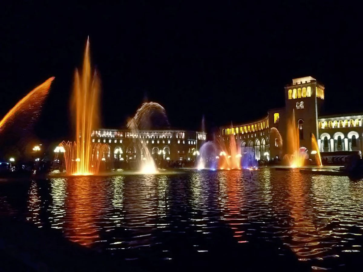 - Посмотрим и послушаем знаменитые поющие фонтаны на площади Республики