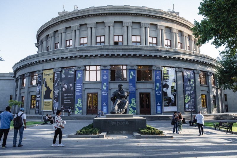 Оперный театр. Одно из культурных сокровищ столицы Армении построено в стиле неоренессанса. Его фасад украшен колоннами и скульптурными деталями. После фотосессии в этом месте расскажу немного о его истории — театр был открыт в 1933 году и с тех пор служит центром оперного и балетного искусства страны.