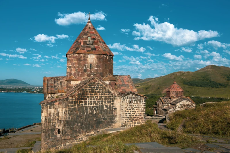 Монастырь, основанный царевной Мариам, вдовой армянского короля, стоит на полуострове и словно парит над водной гладью.