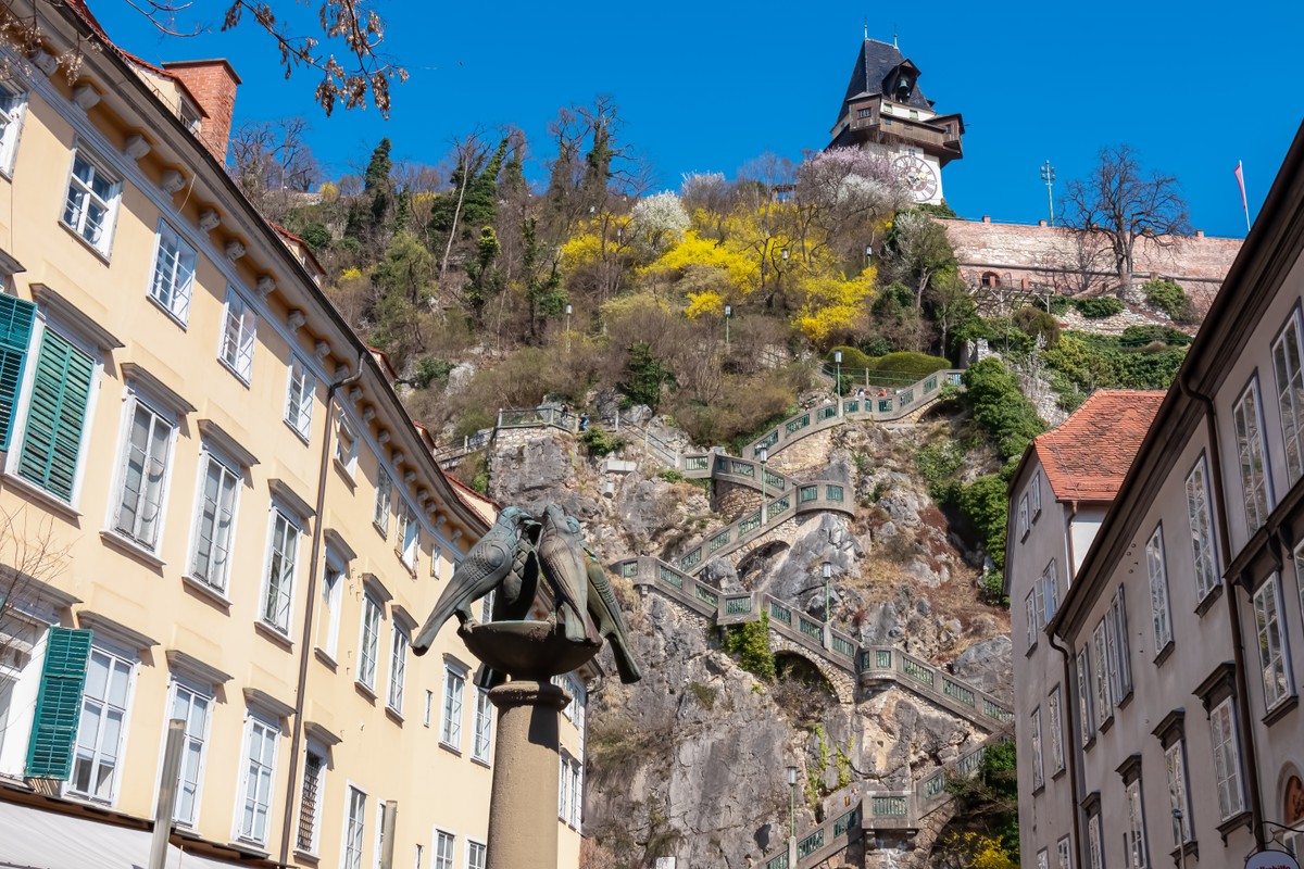 Вы увидите все знаковые места центра: собор святого Эгидиуса и усыпальницу семьи Габсбургов, старую крепостную стену и легендарную двойную винтовую лесенку XV века. Пройдете по симпатичным улицам, послушаете колокольный звон и полюбуетесь танцующей парочкой в старейшем открытом аттракционе города. Мы заглянем в сказочные средневековые дворики в стиле готики, ренессанса и барокко — ведь именно они создают уютную атмосферу Граца. На главной площади, у старинной Ратуши, я расскажу замечательную историю любви семьи Габсбургов. А площадь Францисканцев поразит вас древними латернами и монастырем XV века.
