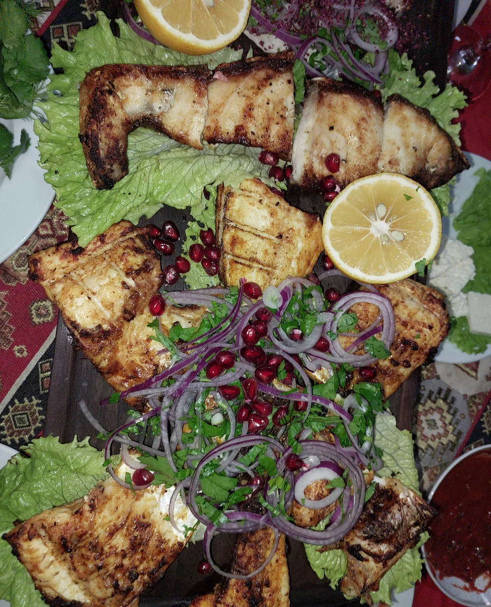 Быть в Баку и не побывать в рыбном ресторане непозволительно! Я приглашу вас в одно из нетуристических мест, на самый край Апшерона, где вы увидите диковинные дачи бакинцев. По пути я расскажу вам об особенностях дачных традиций и дачного градостроительства и удивительном предмете быта в каждой даче бакинца, без которого невозможно представить ни один дачный дом в нашей стране. После мы посидим в бунгало в уютной обстановке — столики установлены вблизи береговой линии. Вы попробуете фирменные блюда из каспийской рыбы (осетр, белуга, берш, кефаль, кутум и др.) с кизиловым и гранатовым соусами и специей сумах, а также лепешку с загадочной начинкой, соединняющей несоединяемые ингредиенты. Отдохнёте от суеты, попьете чаю с травами. Цены здесь демократичные, персонал внимательный, еда — пальчики оближешь.