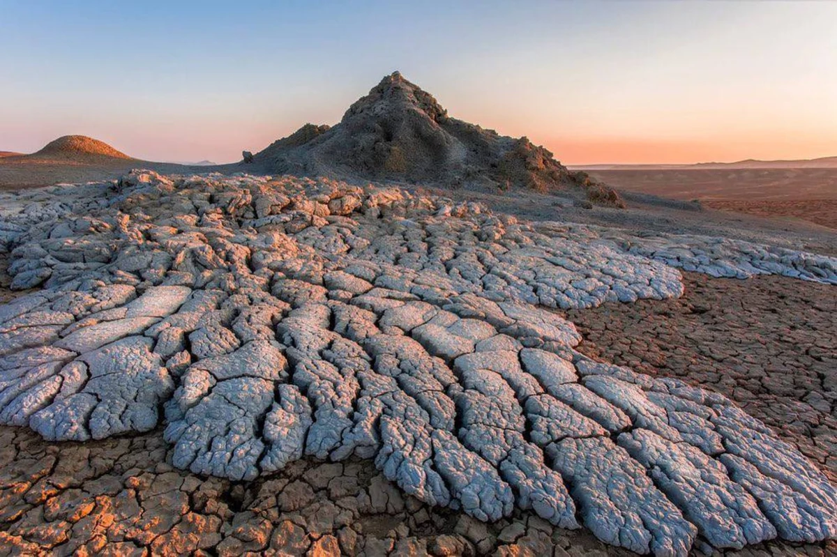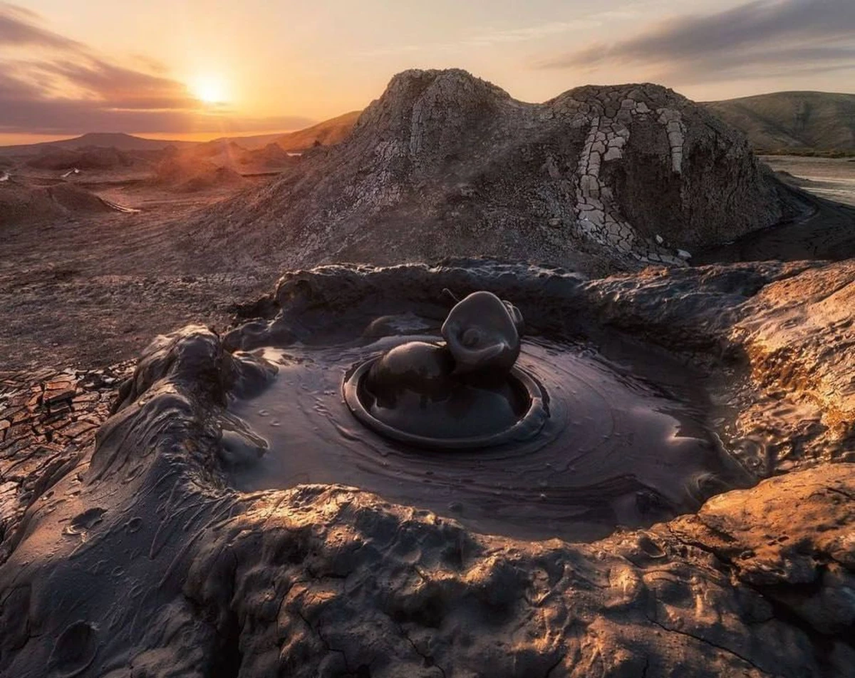 Грязевые вулканы. Газ и вода вырываются на поверхность, образуя грязь, богатую минералами. Это одно из редчайших природных явлений. Азербайджан занимает первое место в мире по количеству таких вулканов. Многие из них активно извергаются — настоящий спектакль, созданный природой!