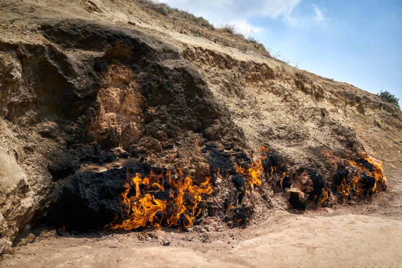 Огненная гора Янардаг. На склоне холма перед вами предстанет естественный вечный огонь — он возникает из-за воспламенения природного газа, проникающего через поверхность земли.