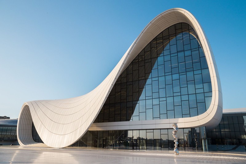 Центр Гейдара Алиева — «космический» проект Захи Хадид, Музей ковра (осмотр снаружи), Кукольный театр начала 20 века, мэрия Баку, Президиум Академии наук.