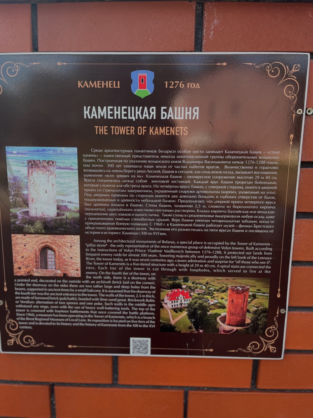 10:00 — город Каменец. Посетим Каменецкую башню 13 века — символ белорусского зодчества. Вы услышите о средневековом прошлом города и узнаете, зачем было построено это укрепление
