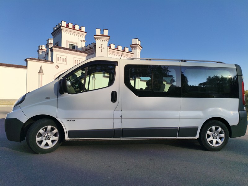 - Трансфер на микроавтобусе Renault Trafic Long c кондиционером, объёмным багажным отделением и посадочными местами для 8 пассажиров