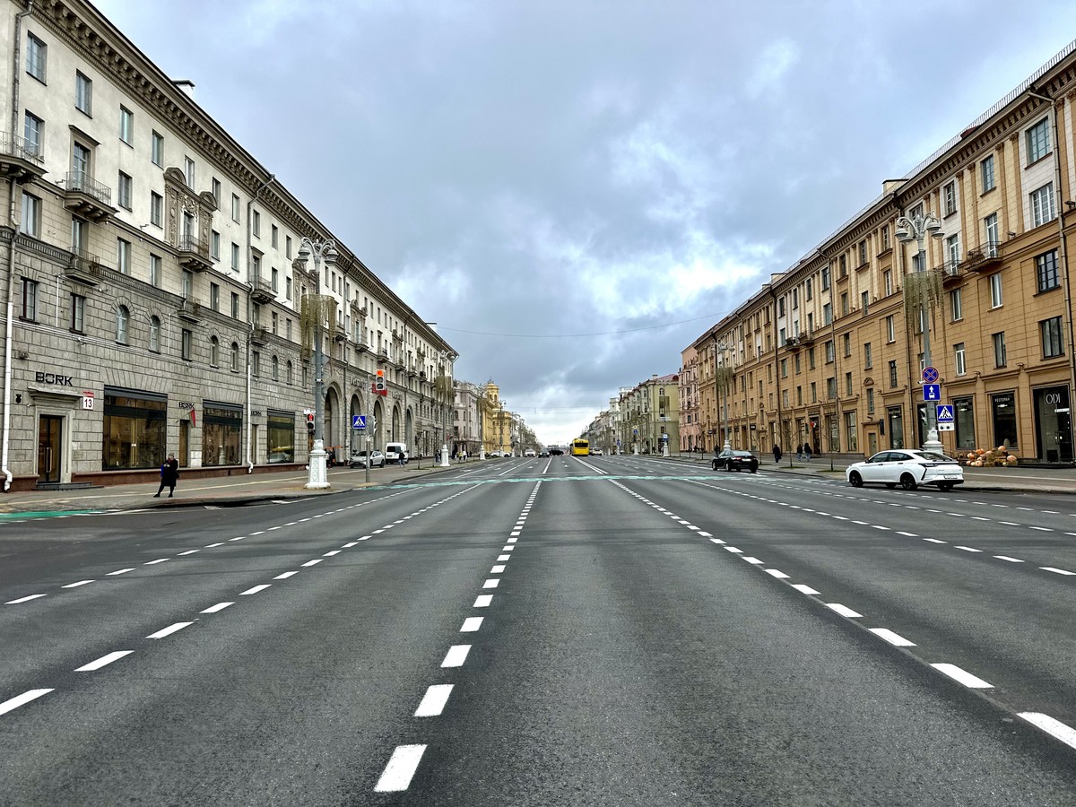 Проспект Независимости. Вдоль него расположились архитектурные шедевры, определяющие лицо города. Памятники конструктивизма, здания в стиле сталинского ампира и современная Национальная библиотека, напоминающая блестящий алмаз.