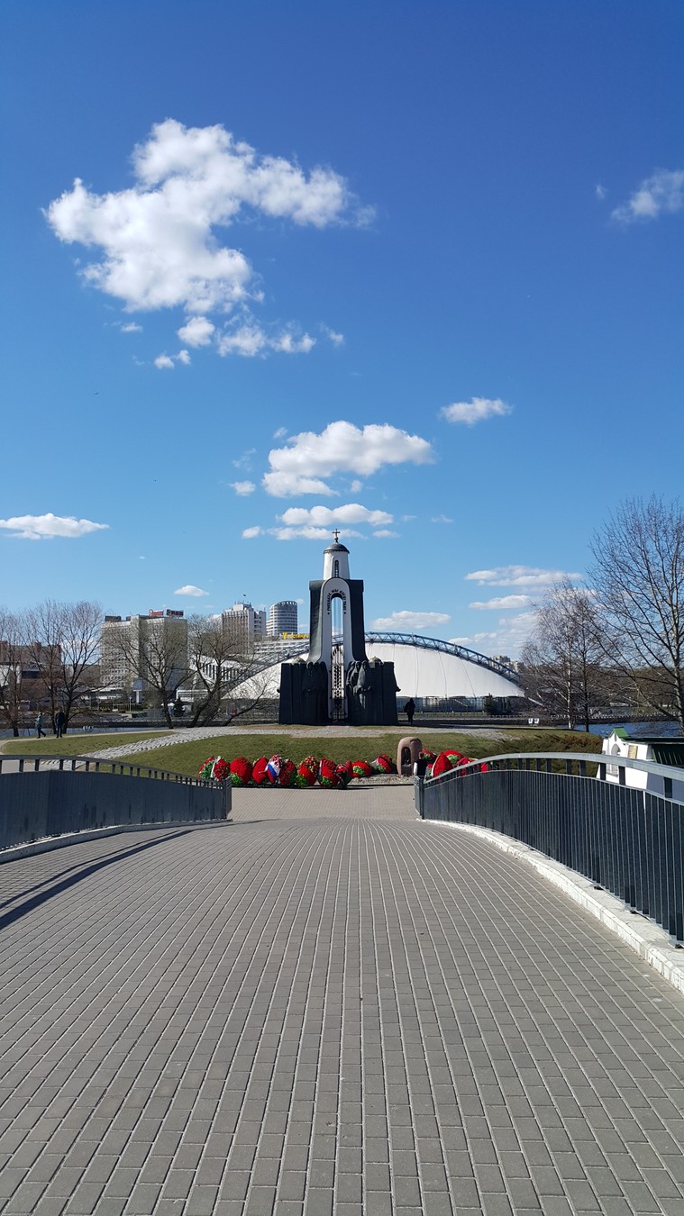 Перекинем мост времени — через Свислочь к району 19 века. Прогуляемся по старинным улицам. Неподалёку увидим «Остров слёз» — мемориал павшим в афганской войне.