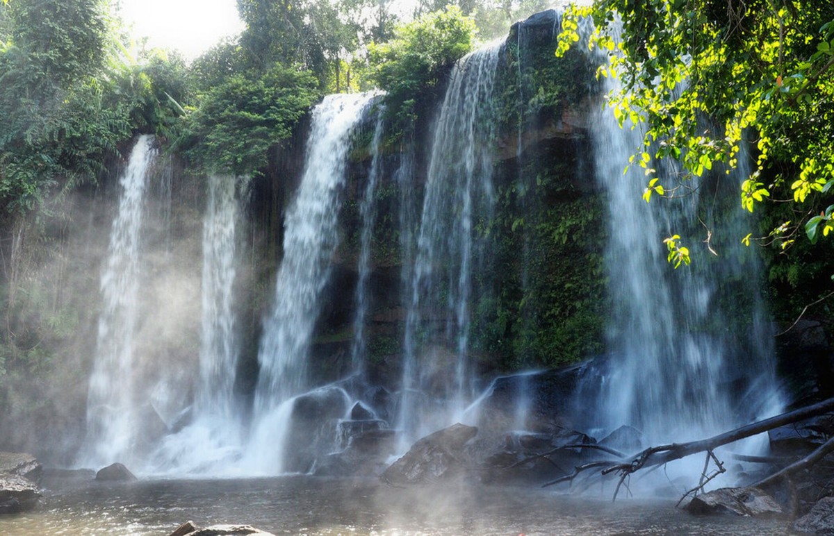 Двухкаскадный водопад. Кхмеры верят, что этот водный поток, текущий в озеро Тонле Сап, освящает все реки Камбоджи. Здесь можно искупаться и зарядиться природной энергией.