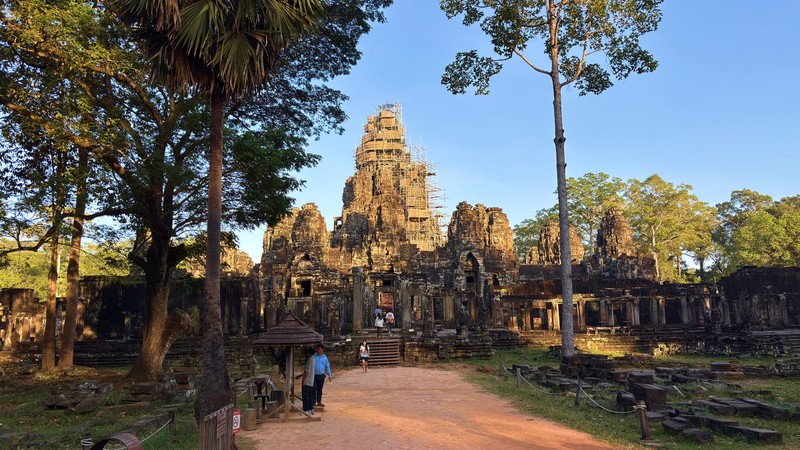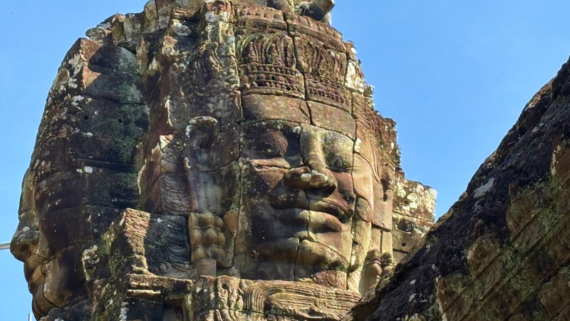 Байон — центральный храм Ангкор Тома, знаменитый 54 башнями с гигантскими улыбающимися лицами. Посвящён буддизму, однако позже был адаптирован под индуистские культы.