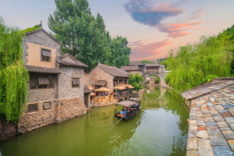 Отправимся в воссозданный купеческий городок, где все дома скопированы со старинных усадеб провинции Чжэцзян. Это Китай, каким вы представляли его по фильмам: арочные мосты, черепичные крыши, резные ставни, остров с маяком и ремесленные лавки.