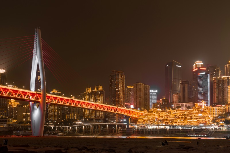 Круиз по рекам Янцзы и Цзялин (45 мин). На подсвеченном корабле вы проплывёте мимо небоскрёбов, мостов и старинных кварталов на холмах — потрясающий контраст старого и нового.