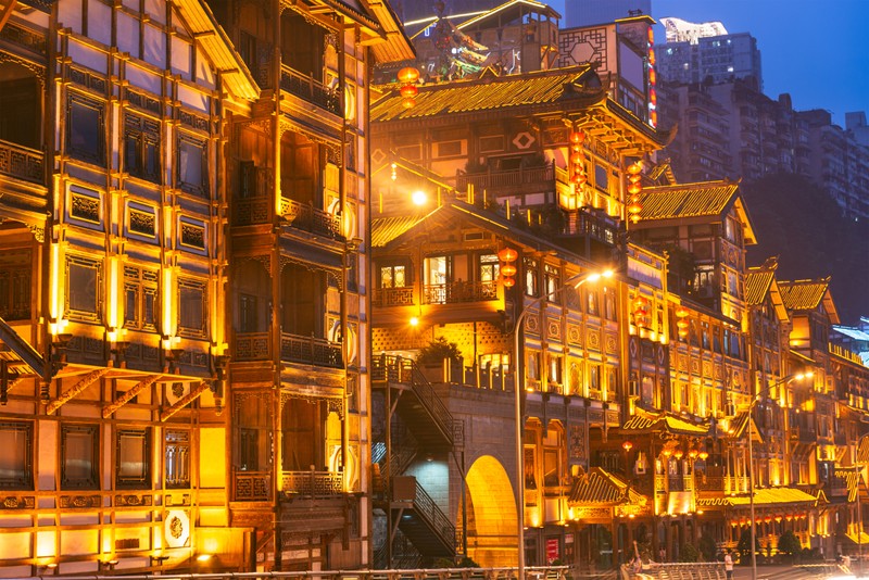 Пещера Хунъя — фантастический архитектурный комплекс. Вы пройдёте по извилистым улочкам с традиционными деревянными постройками и узнаете историю Хунъя Дон, которая восходит к началу династии Мин. Полюбуетесь видами реки Цзялин и сделаете те самые фото — с неоновыми огнями, фонарями и многослойной архитектурой на скалах.