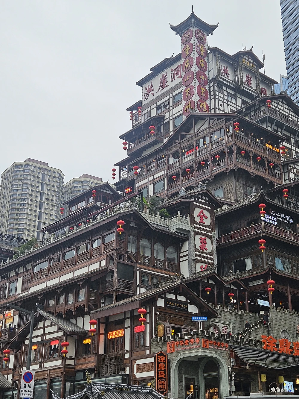 Вечерние виды города с воды и внешний осмотр Хуньядун — одного из самых фотогеничных районов Чунцина.