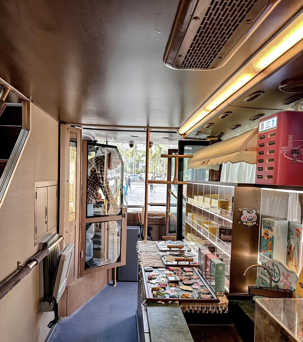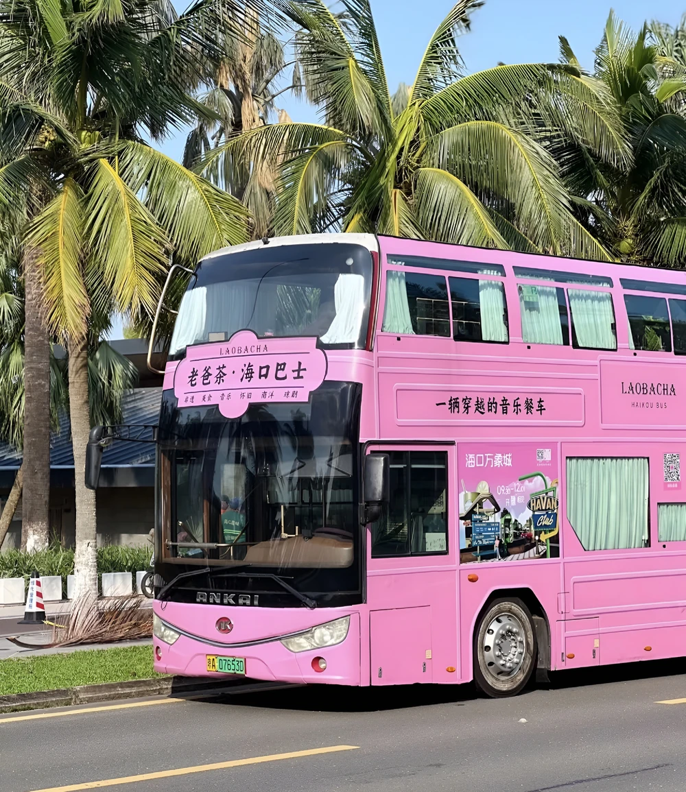 Автобус-чайная оснащён панорамным стеклянным потолком, барной зоной и небольшой сценой для выступлений. По мере движения звучит приятная музыка, могут проходить выступления артистов, а за окнами постепенно открываются достопримечательности Хайкоу: