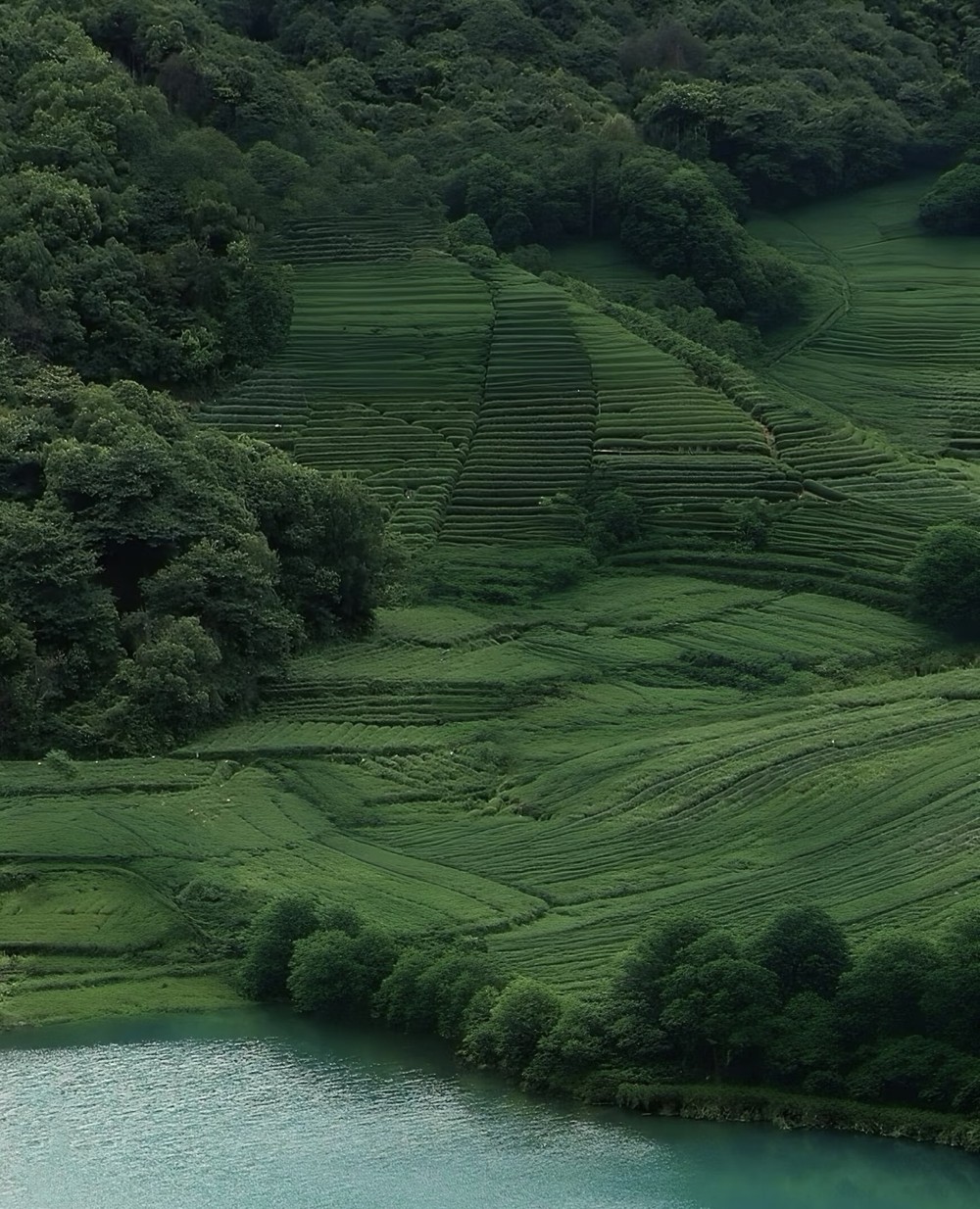 Пройдёте вдоль водоёма среди холмов, покрытых чайными кустами. Тихая вода и отражение гор — отличный фон для фото.