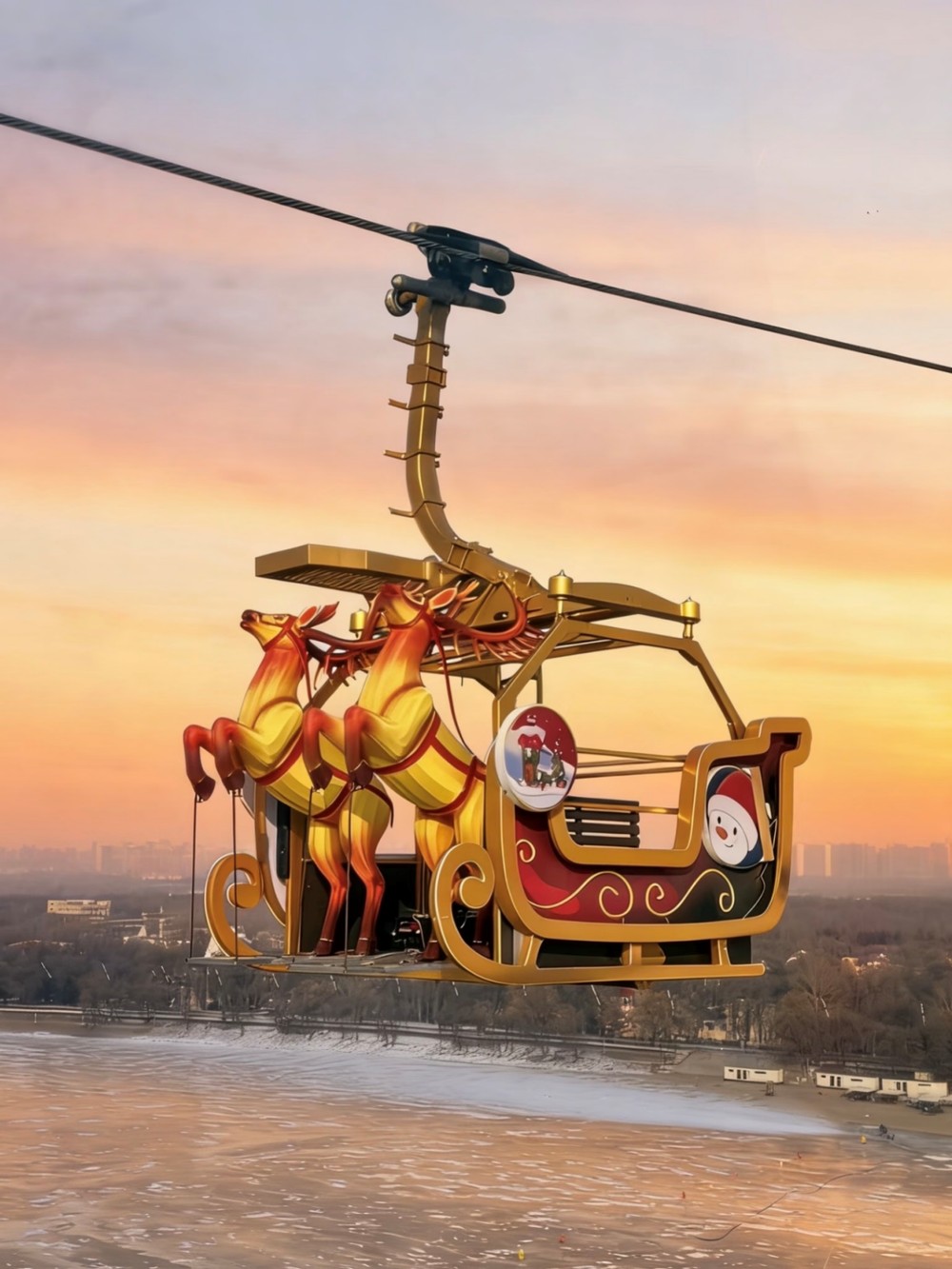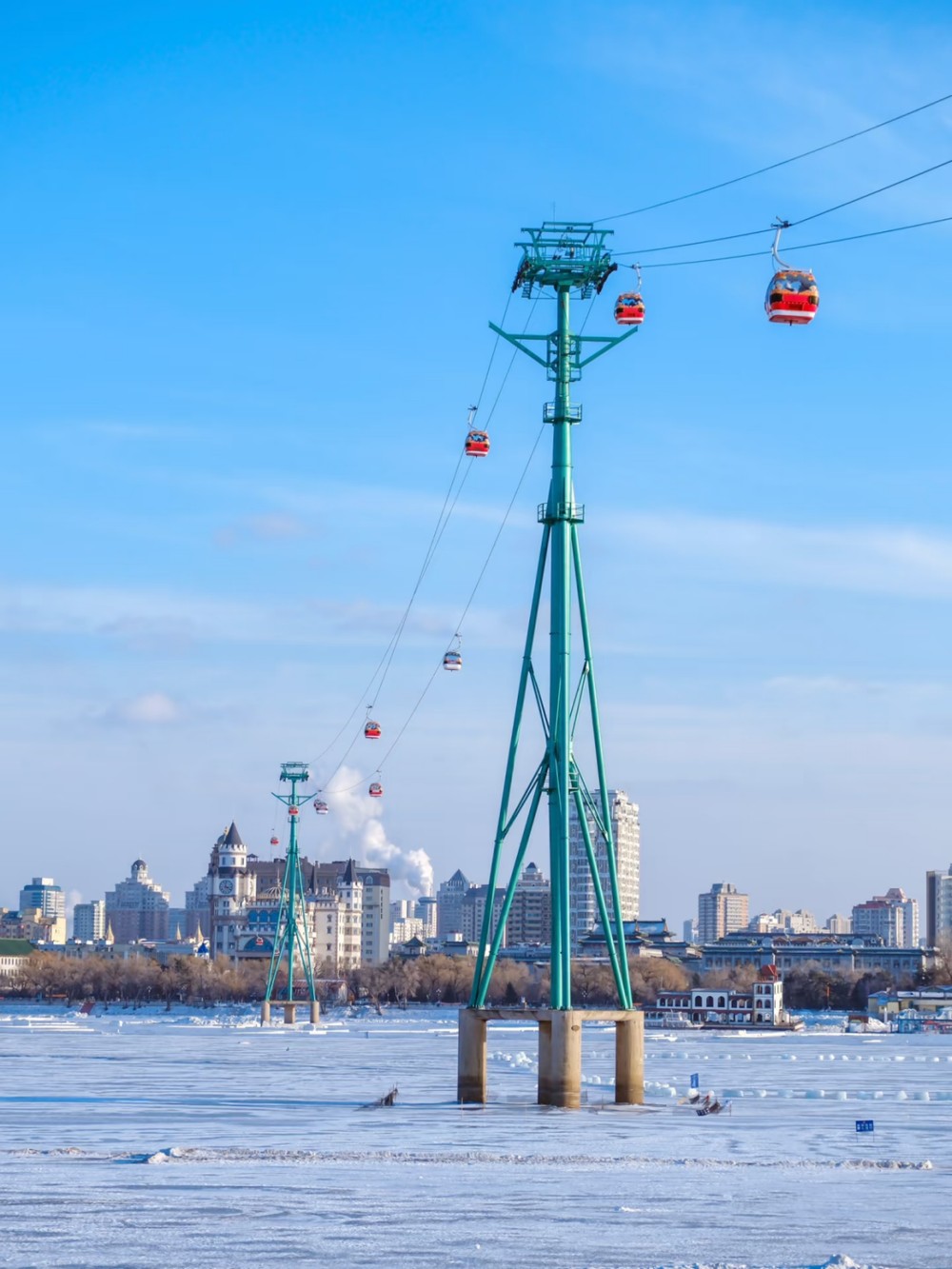 " Хотите увидеть Харбин с высоты птичьего полёта? По канатной дороге вы отправитесь из района Даоли на Солнечный остров (или наоборот). По пути рассмотрите набережные и кораблики на реке, увидите рыбаков и парк Сталина — и многое другое! У вас будет время для прогулки, а затем вы вернётесь обратно в комфортной панорамной кабинке. "
