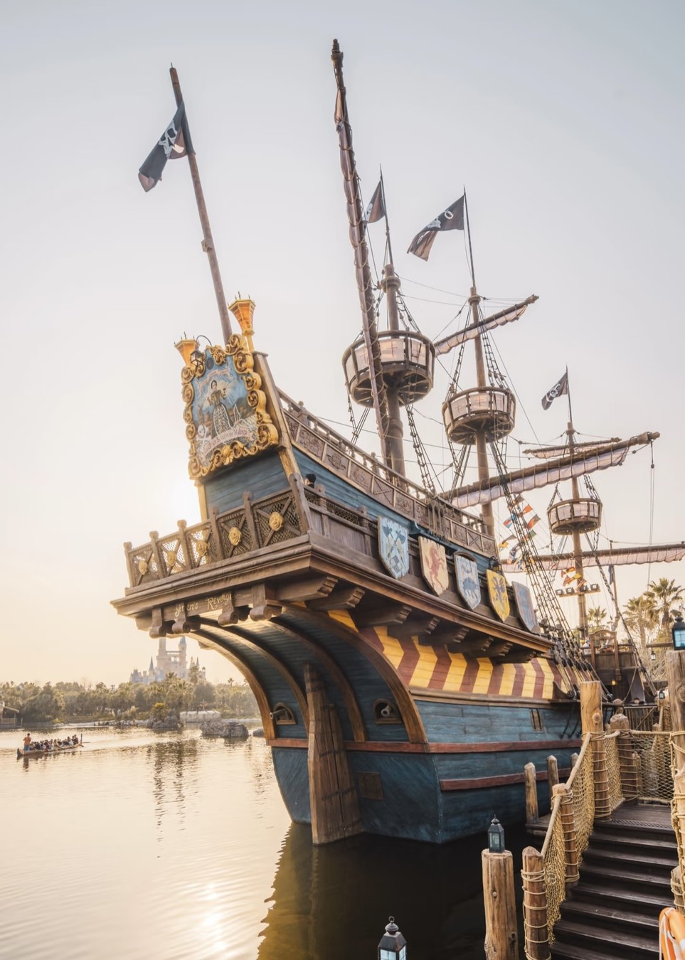 Бухта сокровищ (Treasure Cove/宝藏湾). Первая в мире зона Disney, посвящённая «Пиратам Карибского моря». Главный аттракцион: «Битва за сокровища» — морское приключение с Джеком Воробьём.