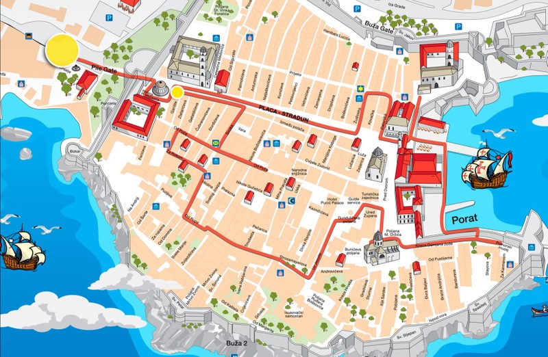 Наш маршрут пройдет по историческому району, где сконцентрированы главные достопримечательности Дубровника. Мы встретимся у входа в Старый город, прогуляемся по старинной пешеходной улице Страдун и рассмотрим архитектурные доминанты главной площади Лужа — городскую ратушу, звонницу и белокаменный храм святого Власия. Свернув на узкие улочки к синагоге, мы поговорим об истории еврейской общины Дубровника. У доминиканского монастыря и ступеней церкви святого Игнатия отыщем хорошо знакомые локации сериала «Игра престолов». Кроме того, вы прогуляетесь по старому порту Дубровника, услышите историю Кафедрального собора и узнаете, кто и как управлял городом из Княжеского дворца.