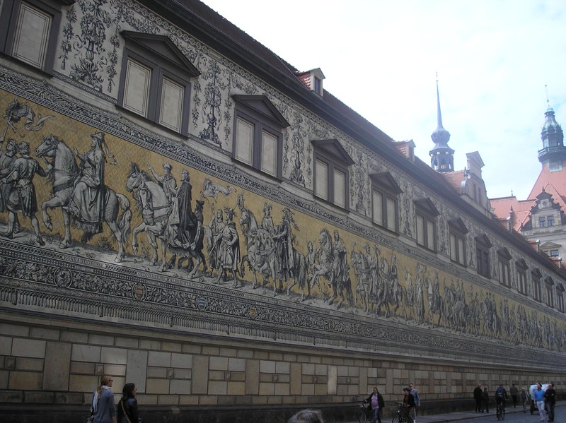 - Шествие князей — самое большое панно в мире, выполненное из мейсенских фарфоровых плиток. Мы сможем заглянуть в глаза всем 35-ти саксонским правителям.