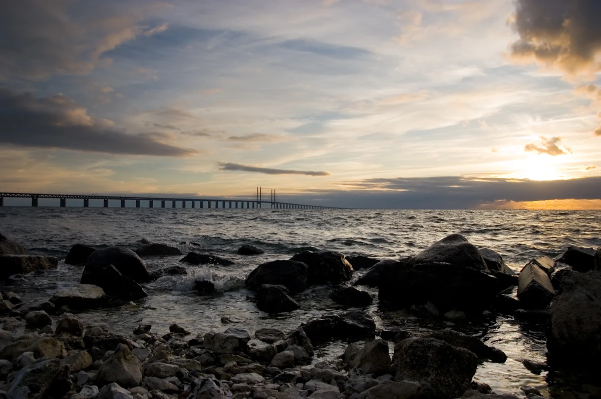 Затем отправимся в самый южный город Швеции — Мальмё — через Эресуннский мост. Он известен тем, что соединяет Данию и Швецию и считается самым большим подвесным мостом в Европе. Его длина — 16 км, 4 из которых — подводный тоннель!