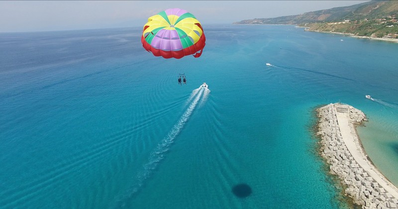 " Парасейлинг — один из самых захватывающих видов водного спорта и яркое приключение, в котором вы почувствуете себя парящей птицей и насладитесь панорамами окрестностей. С помощью парашюта, прикреплённого тросом к лодке, вы подниметесь в небо примерно на 100 метров — и проведёте в воздухе 10-15 незабываемых минут. "