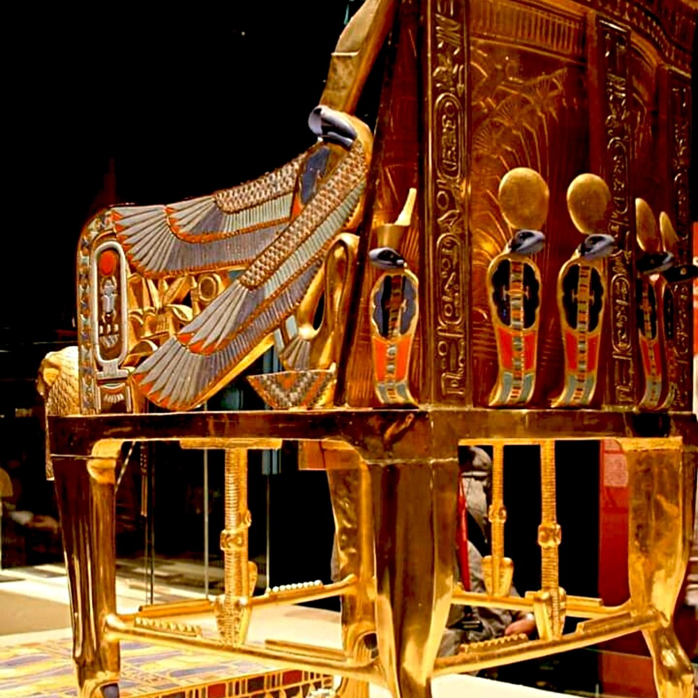 - Трон Тутанхамона с изображением фараона и его жены