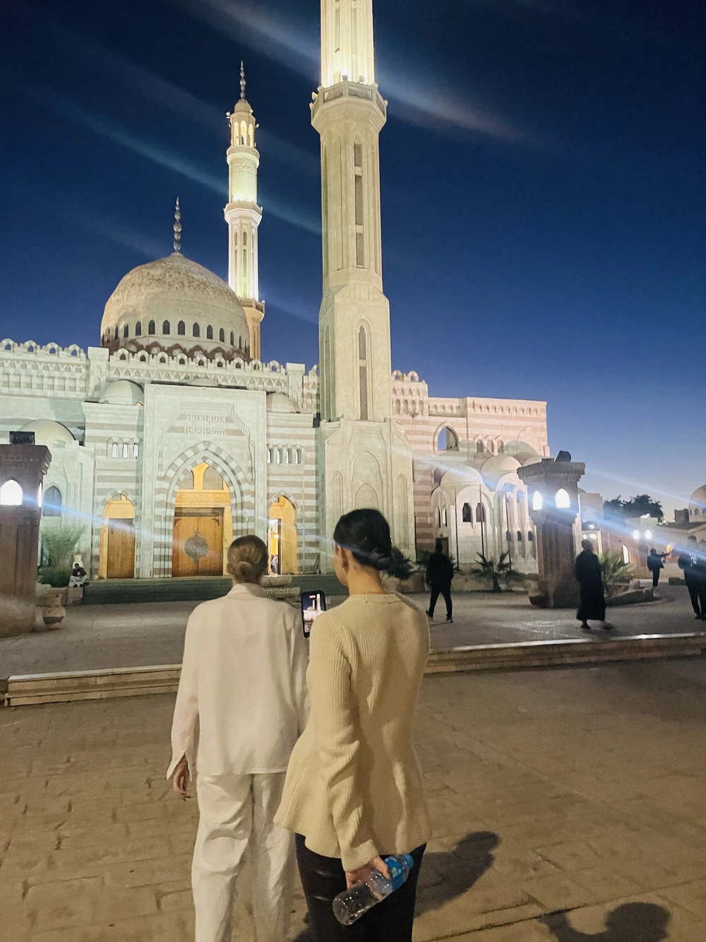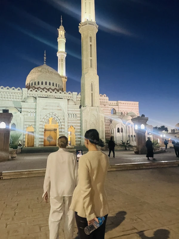 Вы окажетесь в шумной атмосфере восточного рынка. Здесь можно торговаться, попробовать арабские сладости, рассмотреть лавки со специями, маслами и экзотическими фруктами. И конечно, прикупить необычные сувениры. Рядом возвышается мечеть Эль-Сахаба — если захотите, заглянем и внутрь.