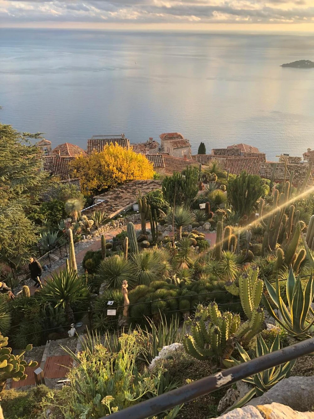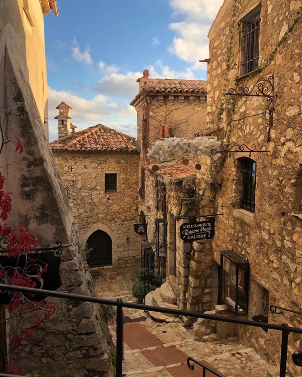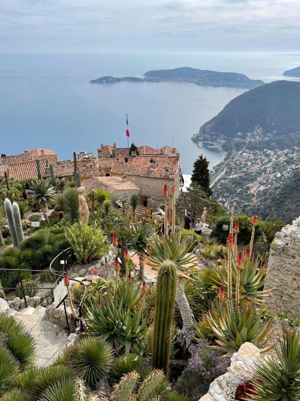 На самой вершине — знаменитый ботанический сад Эза: кактусы, алоэ и редкие растения на фоне одних из самых впечатляющих видов Французской Ривьеры. Здесь море сливается с небом, а городки внизу кажутся игрушечными.
