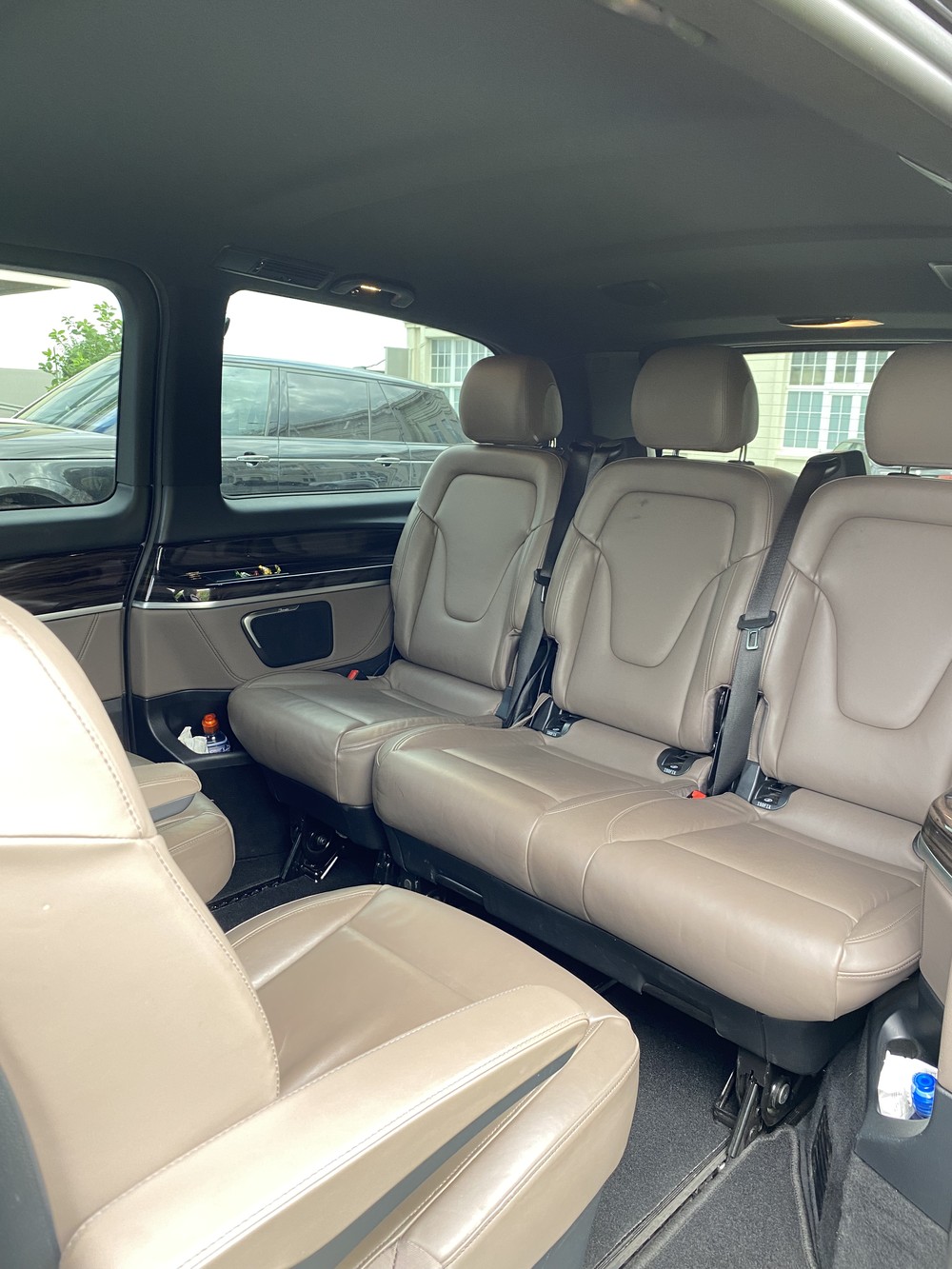 - Транспорт — комфортабельный минивэн, например, Mercedes V-класса. В нём всегда есть питьевая вода и сладости, зарядные устройства