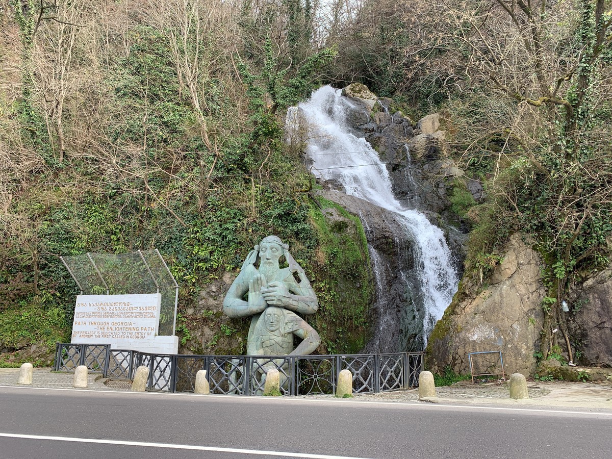 Мы направимся в сторону поселка Сарпи, где вы увидите границу с Турцией, водопад и необычную статую Андрея Первозванного. Далее посетите древнеримскую крепость Апсарос в Гонио, услышите связанную с ней таинственную легенду и узнаете, как крепость пережила крушение шести величайших империй в истории человечества. По живописной горной дороге мы доедем до 48-метрового водопада Махунцети и арочного моста, построенного в XII веке при царице Тамаре. Я расскажу о периоде ее правления, когда Грузия достигла наибольшего расцвета в своей истории.