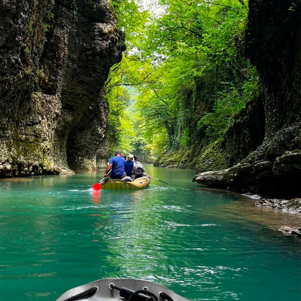 Прогулка по мостам над пропастью, водопады и бирюзовая река, прогулка на лодке между отвесными скалами (по желанию).