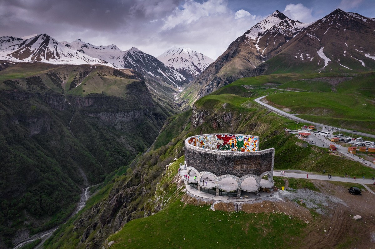 Перебравшись через Крестовый перевал, окажетесь в Гудаури, где со смотровой площадки окинете взглядом окрестности горнолыжного курорта. Пешком или на внедорожниках мы заберёмся на высоту 2170 метров к храму Святой Троицы в Гергети. И именно там, кроме старинной церкви, вас ждёт панорама легендарного Казбека — могучего и своенравного символа Грузии.