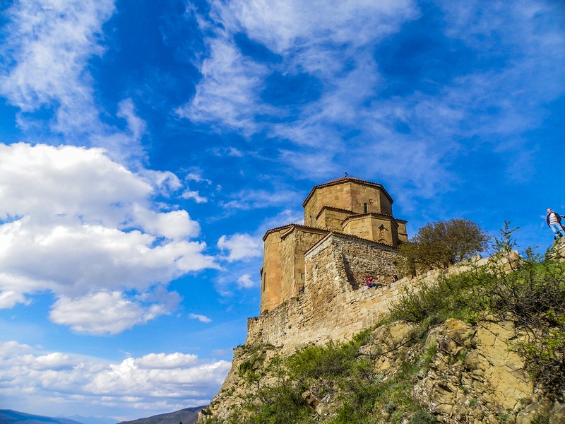 Храм 7 века стоит на вершине горы, где Арагва встречается с Курой (Мтквари). Отсюда открывается один из самых известных видов Грузии. Многие гости признавались, что именно здесь влюбились в эту страну. Лермонтов, возможно, тоже вдохновлялся именно этими пейзажами.