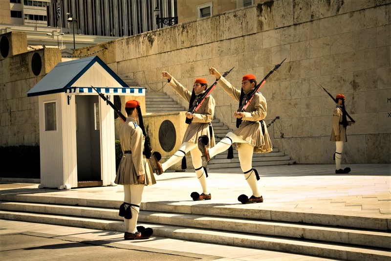 - На площади Синтагма вы посмотрите на смену почётного караула и эвзонов, узнаете о назначении их причудливых «юбок» и башмаков с помпонами.