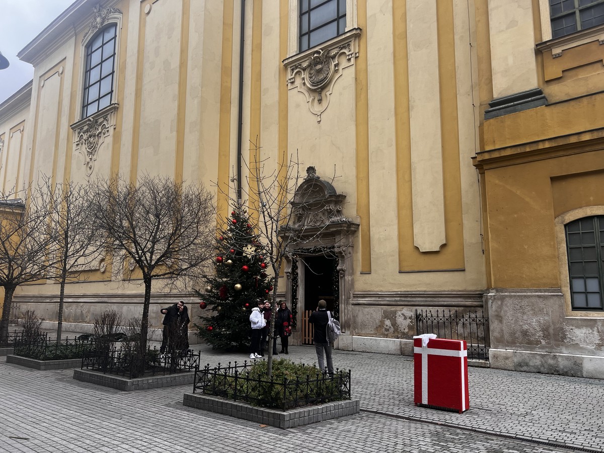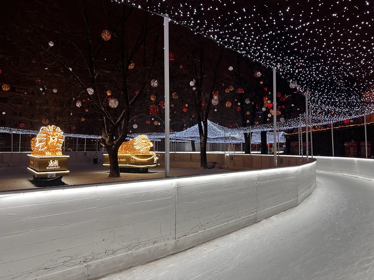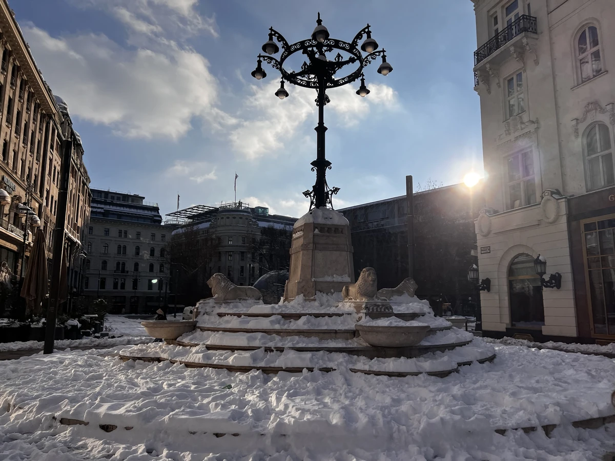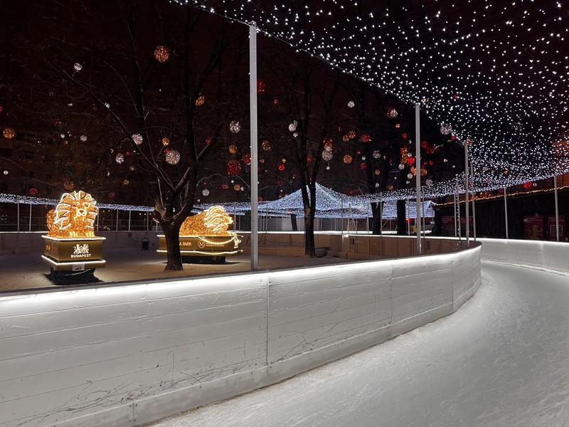 - Начнём экскурсию с площади Героев и городского парка «Варошлигет» — это одна из самых красивых зимних локаций Будапешта