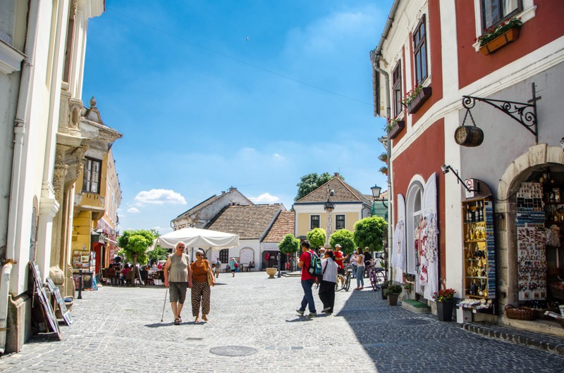 С первого взгляда Сентэндре покажется вам подходящим местом для действия какой-нибудь средневековой таинственной истории: узкие мощёные улочки, старинные храмы, домики и многочисленные лавки. На облике города остался отпечаток пребывания здесь сербских беженцев, спасавшихся в этих краях от гнёта Османской империи. Вы зайдёте в магазин фарфоровой мануфактуры Херенди, полюбуетесь экспонатами музея марципана и музея — ни много ни мало — Рождества, где найдёте коллекцию старинных ёлочных игрушек прошлого века. Завершится наша прогулка в ресторанчике с национальной кухней, который открылся в Сентэндре уже очень давно и славится своей вкусной, почти домашней кухней.