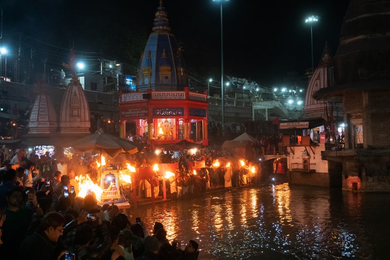 Хар Ки Паури гхат. Старинная священная купальня. Согласно поверьям, Вишну пролил в этом месте небесный нектар и оставил отпечаток ступни. Каждый вечер сотни людей собираются здесь на красочную индуистскую церемонию.