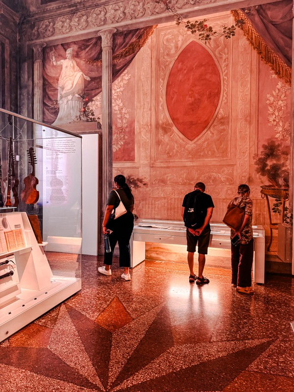- И наконец, посетим Международный музей музыки. Вы увидите богатейшую коллекцию музыкальных инструментов и книг по истории музыки. Среди экспонатов музея — экзаменационная работа 14-летнего Моцарта в филармонической академии Болоньи, рукописная партитура «Севильского цирюльника» Россини и редчайший экземпляр клавесина.