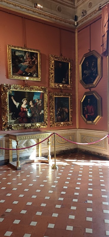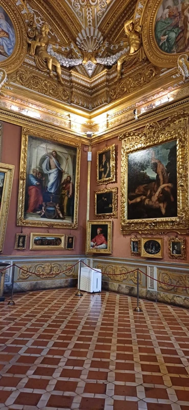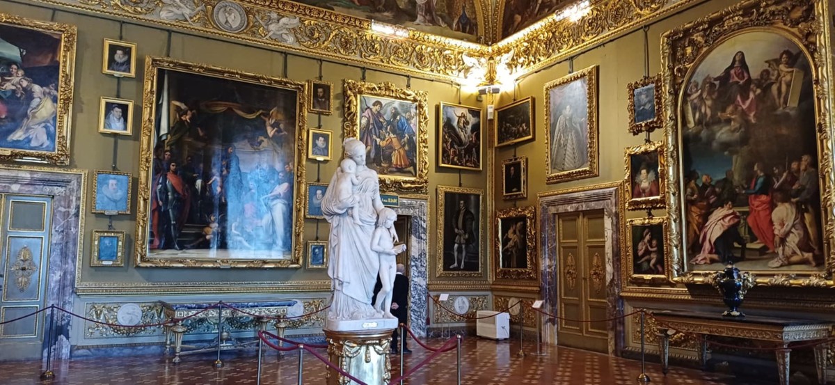 Резиденция великих герцогов не следует никакому порядку, ни школам живописи. Она — типичный пример частной коллекции в жилом доме-дворце, где все стены декорированы картинами в богатых рамах и развешены с соблюдением личного вкуса хозяина. Во дворце Питти представлены знаменитые художники, без которых нельзя понять Италию и итальянское искусство: Тициан, Караваджо, Рафаэль, Джорджоне и другие живописцы эпохи Возрождения.