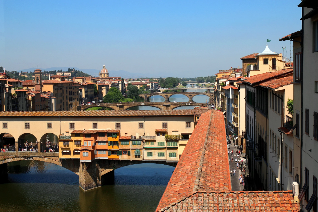 Площадь Республики, где прежде действовал Римский Форум, и площадь Синьории — бывший центр политической жизни города — по-прежнему привлекают жителей города всех возрастов. Сейчас здесь находится музей под открытым небом Лоджия Ланци и старинный дворец «Палаццо Веккьо», описанный в нашумевшем романе Дэна Брауна «Инферно». Шумными улочками, мимо магазинов, кофеен и детских каруселей, мы пройдем к старинному мосту Понте-Веккьо, сохранившему первоначальный облик до наших дней.